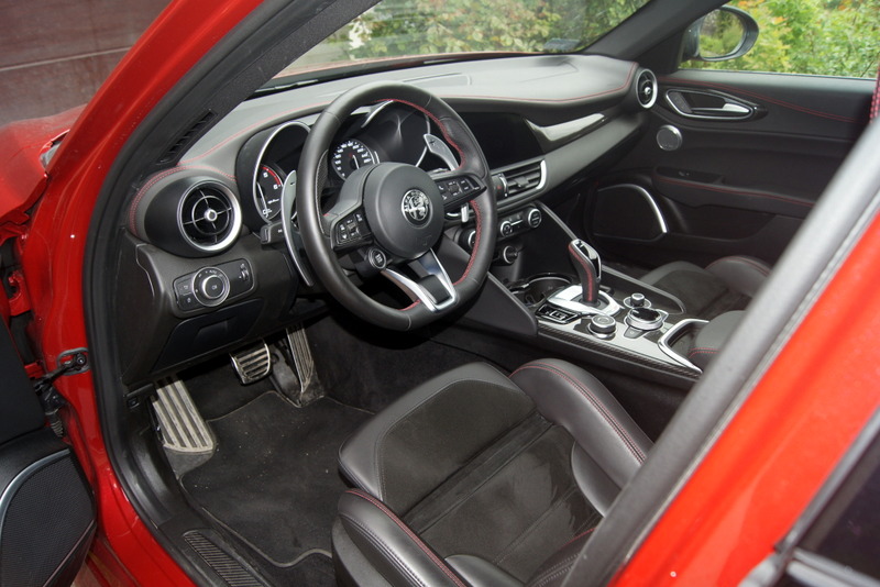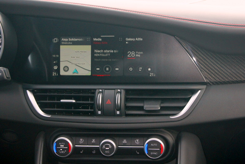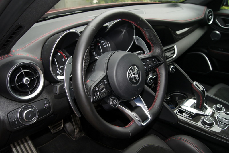 Już po zajęciu miejsca za kierownicą poczujemy, że nie jest to „zwykła maszyna”. Wnętrze Giulii oferuje najwyższy poziom zastosowanych materiałów, bezpieczeństwa, wyposażenia i komfortu. Dodatkowo dobrą robotę robi skierowanie wszystkich dostępnych urządzeń, przyrządów, wyświetlaczy i liczników w stronę kierowcy. Nieprzypadkowo wszystkie główne przyciski, w tym przycisk startera, są wbudowane w kierownicę.