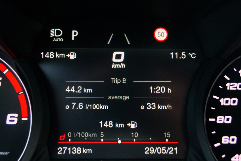 Siedzimy w samochodzie niżej niż w większości modeli tego segmentu. Z tego powodu pierwsze chwile jazdy przez miasto wymagają skupienia, choćby żeby nie zahaczać o krawężniki podczas skrętów. Jednakże po wyjeździe na trasę wszystkie obawy mijają. Układ kierowniczy w Giulii jest tak skalibrowany, że przy minimalnym ruchu kołem kierowniczym samochód momentalnie zmienia położenie. Zapewnia to precyzję i pewność jazdy, jakiej nie spotkałem w żadnym samochodzie. Warto przy tym zauważyć, że podczas jazdy nie ma „myszkowania po drodze” wynikającego ze zbyt czułego układu kierowniczego.