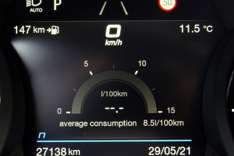 Przyciskiem między fotelami ustawiam komputer samochodu, sparowuję telefon z systemem głośnomówiącym… Pasy zapiąłem wcześniej. Naciskam przycisk uruchomiania silnika, kładę rękę na dźwigni zmiany biegów i popycham ją do przodu. Włącza się bieg wsteczny. Delikatnie wycofuję pojazd z miejsca parkingowego. Podczas tego manewru odnotowałem pewną niedogodność. (Jak się potem okazało, jedyną jaką zaobserwowałem podczas całego testu.) Otóż widok z kamery cofania jest za mały. Wyjeżdżam na drogę, przełącznik zmiany biegów pociągam do tyłu, włącza się przełożenie „D” i…