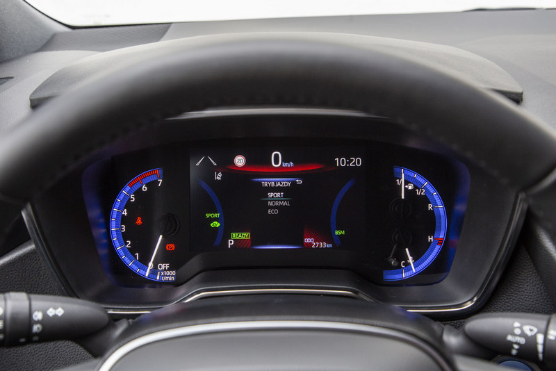 - Tryb SPORT: zarządza układem hybrydowym pod kątem mocnego i dynamicznego przyspieszania. To odpowiedni tryb dla kierowców poszukujących dynamicznej reakcji na gaz, w szczególności podczas jazdy po krętych drogach.